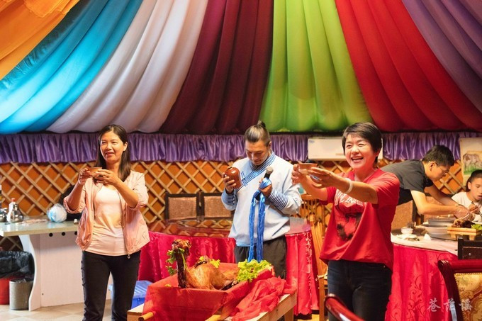 这次草原行一定要吃到烤全羊的,所以我们确定行程的时候就预定了,因为烤全羊是分只的而不分斤卖,提前订的话还会订到更大一些的呦。如果到了地方临时起意再想吃那是门也没有,那只能看着别人吃自己眼馋。店家还专门为我们这桌现场演唱的 蒙古 歌曲、马头琴、呼麦表演。