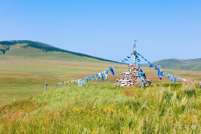 驱车一出 海拉尔 市区,远远的就看到山顶上有一座白色的塔,忽然感觉自己到了 西藏 一般,
