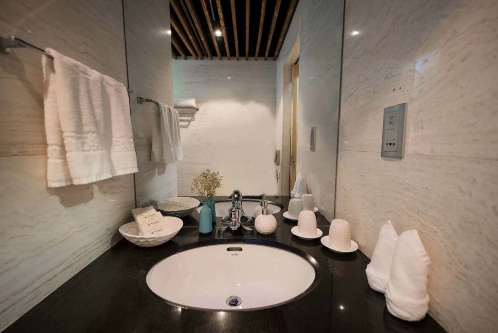 酒店装修风格现代、典雅,对客用品全部采用高星级标准。