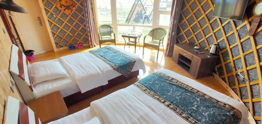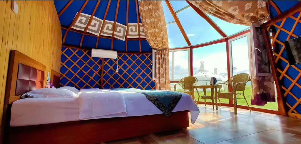 属于草原上一个网红住宿,就是价格比较高,房间也比较少,不过出来旅游可能就不在乎价格的高低啦。本草原景区的住宿布草以及房间的设施都是进口的布草与进口的物品。并且地理位置特别好,莫日格勒河附近,在房间里面就可以看到草原以及莫日格勒河的全貌i,拍照片非常美呀 基本在6月份左右才可以住,价格不菲 一晚的价格最贵的时候在4000米 价格比较合适的时候也是2000米左右
