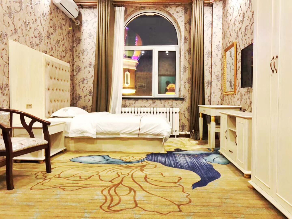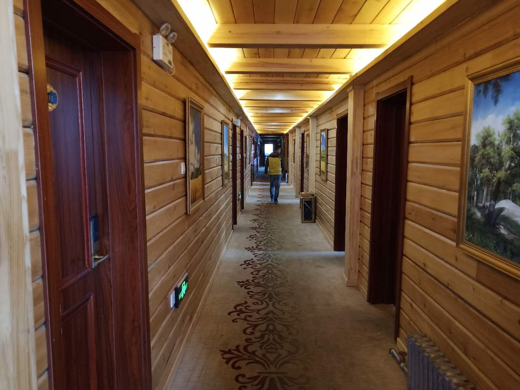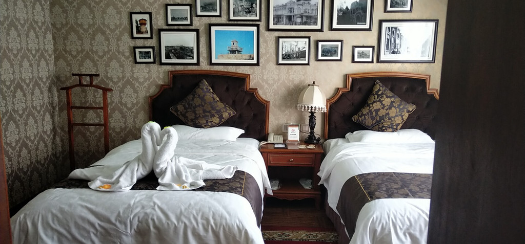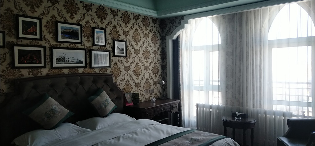满洲里饭店(百年俄式主题店)是在1903年中日战争时期由俄罗斯将军—“尼基金”建立起来的,当你走进饭店,首先印入眼帘的是肃穆、厚重的欧式铜门仿佛在向你诉说这里的悠久历史和英雄人物事迹;进入大堂随着《伏尔加河》流畅的音乐,看着身边来往的俄罗斯游客,在壁炉燃烧的火光下你能感觉一脚踏出了国门;一路上欣赏这俄罗斯风情油画、了解这满洲里市的发展历程,不觉间进入了房间,这里没有高级酒店的奢华,有的是简朴、整洁、宁静,有的是一百年的风情韵味。非常有艺术气息,个人喜欢民族色彩比较重的风格 非常推荐哦