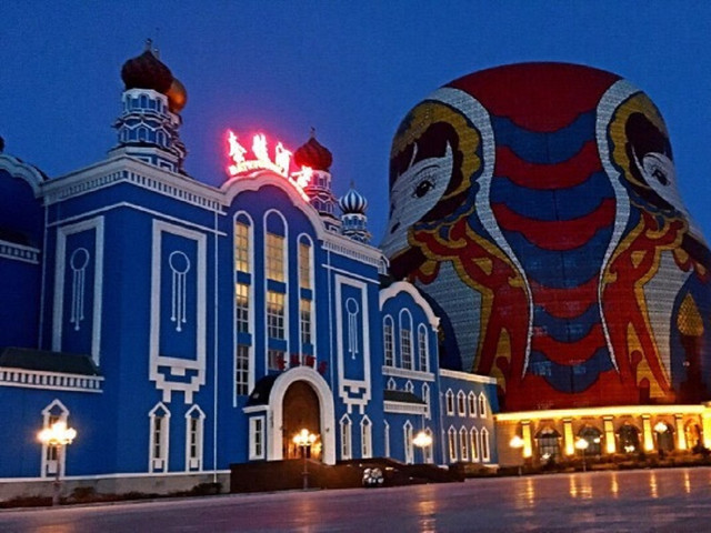 额尔古纳索菲亚酒店位于室韦繁华的俄罗斯风情商业街,是五幢俄罗斯瓦西里大教堂风格建筑,外观气势宏伟独特,到了夜晚灯光亮化更加迷人,是该地区及周边地标性建筑。