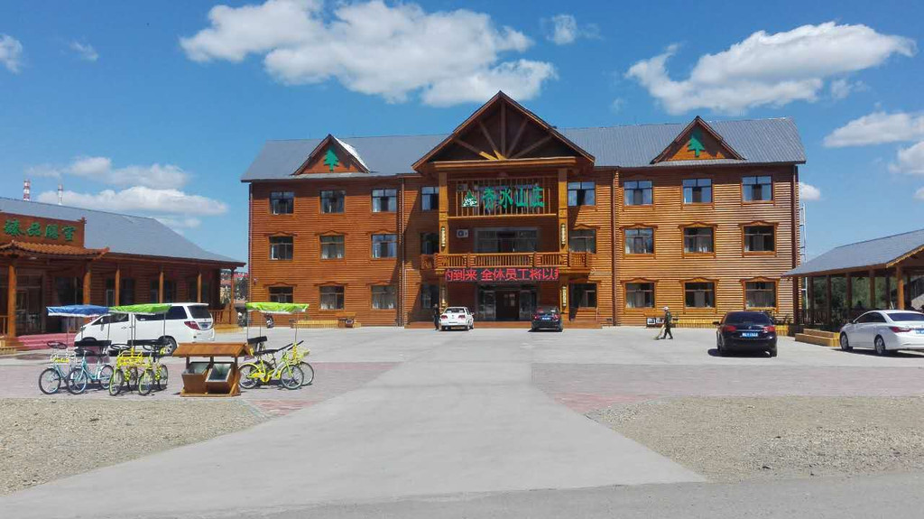 根河市秀水山庄酒店是以原生态纯木质建造的一座休闲养生山庄,地处安静,依山傍水,风景如画,空气清新,自然景观使人心旷神怡有种回归大自然的感觉。每个房间设计独特,温馨,舒适,高雅,木质装修,淡淡的樟松清香,可以感受大自然的气息,房间内设空调,24小时热水,有线电视,无线网络,自动消防系统。餐厅以东北特色菜,蒙餐,手把肉,烤全羊为主。山庄对面是平坦洁净的沙滩蜿蜒在根河河畔,夏季沙滩烤肉,沙滩烤全羊,沙滩摩托,沙滩篝火,夜晚休闲双人自行车,荡秋千。冬季沙滩雪地摩托,雪地爬犁,美丽的雪景,冰雕。大型停车场 旅游季节5-7月初的价格大概在300米左右 7月中旬-8月中旬400-500米左右哦