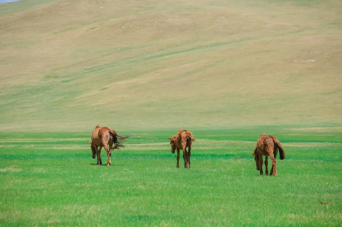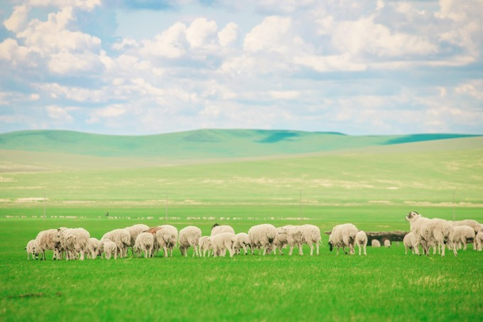 蓝天白云下,一望无际的大草原,满眼皆是充满生机的苍翠绿色,还有悠闲自得食草的牛羊以及那自由奔跑的马群。