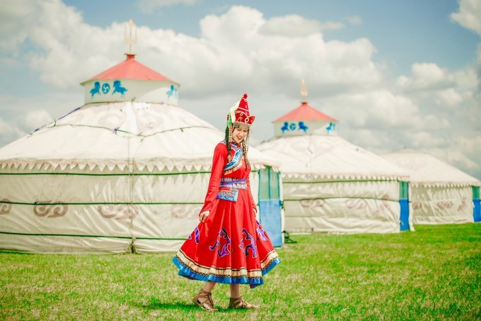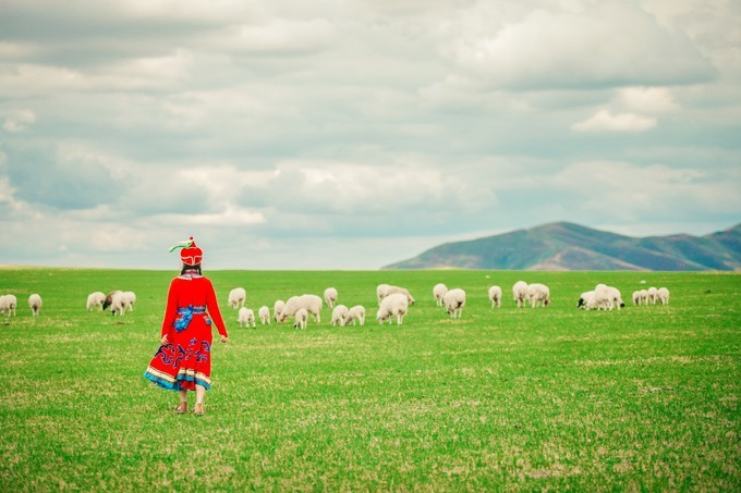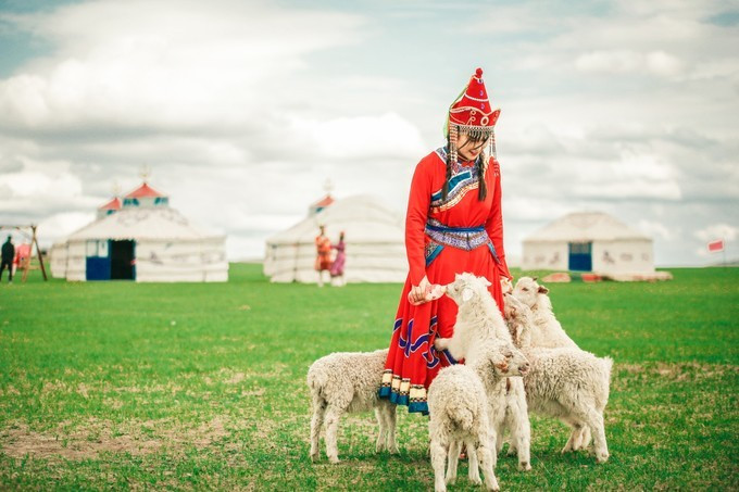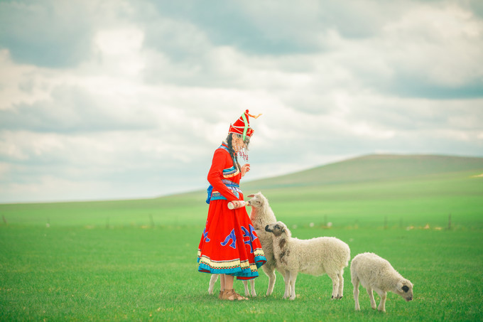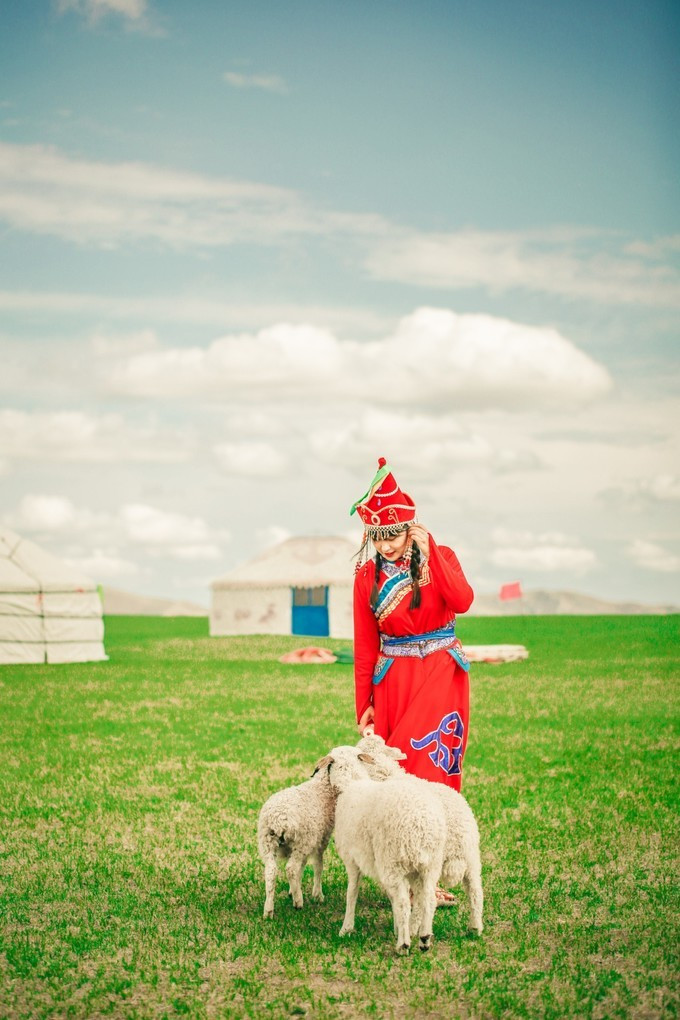 我们在牧民大姐的家里换上了当地特色的 蒙古 服饰,摇身一变成牧羊女啦~