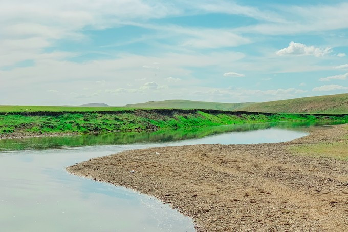 临完成穿越大草原前,六哥还带我们刺激了一把,开车趟水过河!这大概也就六哥的霸道车能做到了把,换做普通的SUV,应该抛锚在不浅的河道中央了吧~皮皮六哥还特地踩了油门,带我们往水深的地方趟,激起层层水花,我们一车人一边死命的抓着车上的把手一边直呼刺激!再来一次哈哈哈!
