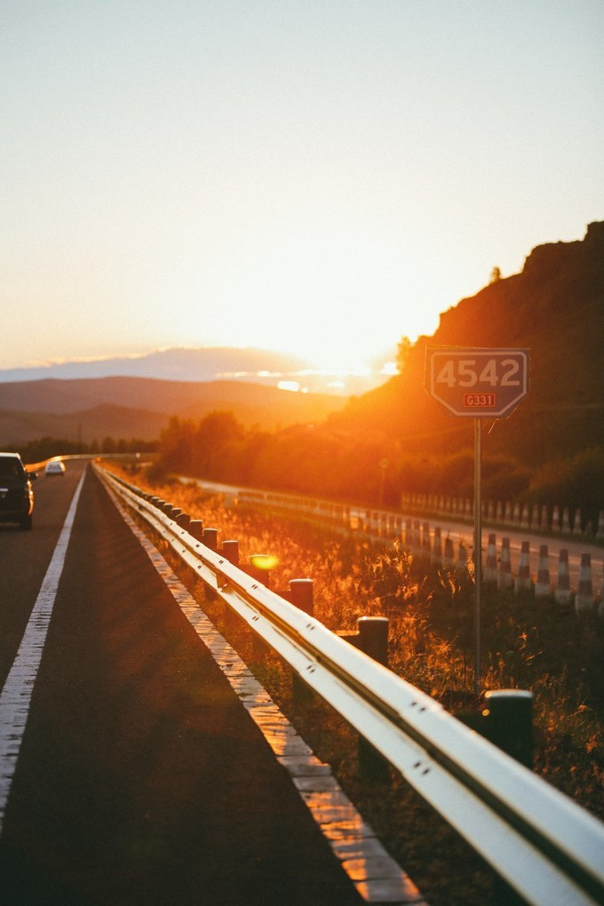 吃完雪糕,我们继续朝 恩和 开,原本计划是还要去白桦林拍照的,可因为我们在草原玩了太久,还没能开到白桦林,太阳就已经落山了。我们倒好,随遇而安,看到公路上夕阳正美,索性不着急去白桦林了,在路边停了车,开始拍“公路大片”哈哈~