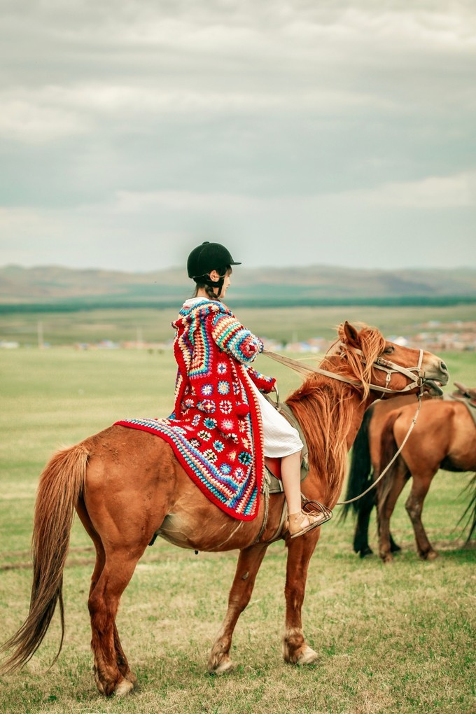蒙古 族的小伙子为我们牵来了马匹,我终于能够自己一个人在马背上体验奔驰草原的乐趣啦~
