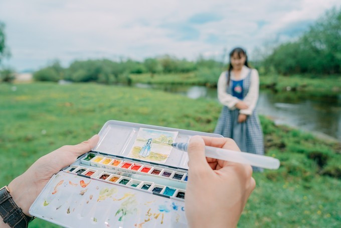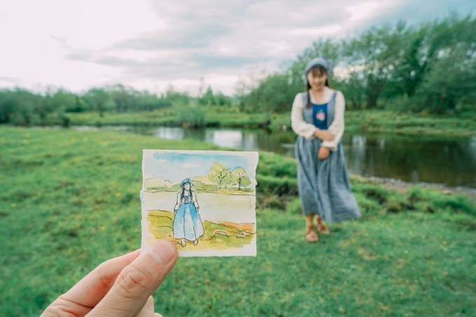 洗完菜在等待六哥和小岳岳秘制烧烤出炉的时候,我和弱冠来到河边画画~