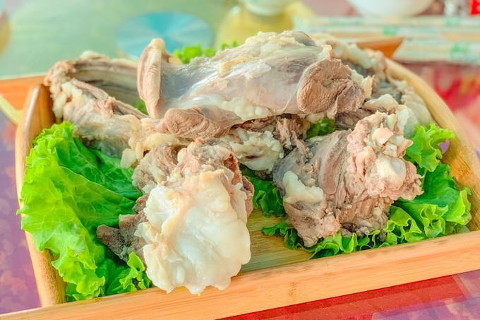 今天六哥带我们吃的是当地特色手把肉,手把肉是 蒙古 民族千百年来最喜欢也是最常用的传统美食,通常做手把肉的羊肉都是在草场上放牧的、经常吃野韭、野葱的羊,它们的肉味最为鲜美。做好后,席间,大家各自执 蒙古 刀一大块一大块地割着吃或用手撕着吃,所以称为“手把肉”,太爽了!