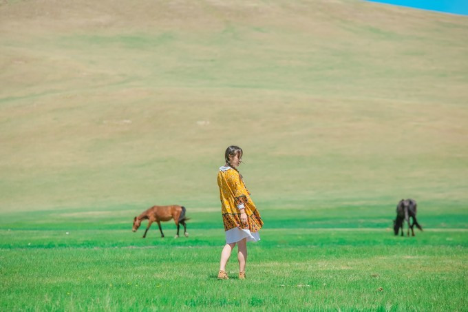 六月的草原,是满眼新生的嫩绿色。深呼吸一口,清香的草木味扑鼻而来,让人心旷神怡。