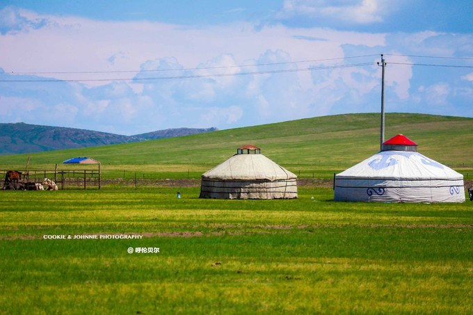 从 呼伦贝尔 出发,首先扎进 呼伦贝尔 大草原。在靠近 海拉尔 的草原上,有很多 蒙古 帐篷部落,搭配着外围的栅栏或者大门上的装饰,“射雕英雄传的感觉扑面而来”(先生语)