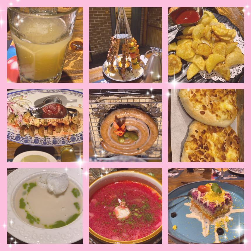 入住满洲里国际酒店,虽然设施略显陈旧,但干净便宜。晚餐就定在满洲里著名的俄餐厅卢布里,网红餐厅基本都会等位,趁着等位的时间,逛逛满洲里的街市,本地俄罗斯产品店较多,品种丰富,经济实惠。卢布里的餐食都非常美味,皇后沙拉、烤串、烤肠、奶酪面包、红菜汤,尤其自酿格瓦斯和啤酒,好喝极了。