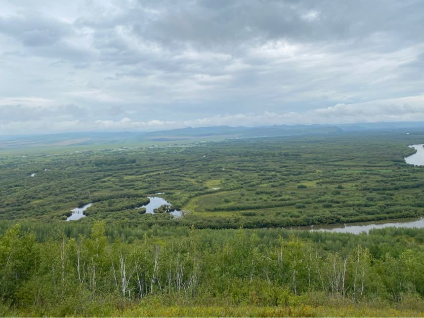 今天回程海拉尔,沿途看看亚洲最大湿地额尔古纳河湿地景区、莫日格勒河河湾。路上走着走着就飘起了雨,越下越大,到了景区门口十一点多钟,想想这么大的雨也没法玩啊,看了看墨迹天气显示1个小时后雨渐停,好吧,先吃午饭。下午一点多,开始了雨后湿地景区游,此处为额尔古纳湿地的一角,主要自然景观有马蹄岛、同心岛、S弯等,虽然阴云密布,但极目远眺依然很壮观,就这么静静的看着远处,感受美好!