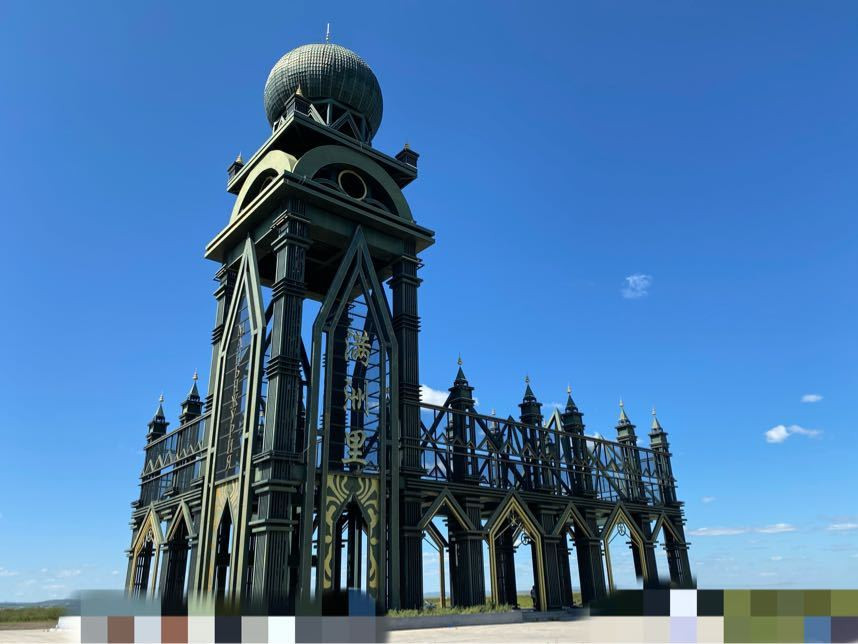 第二天,满洲里至黑山头,早上出发,先看看满州里的套娃广场和国门景区,套娃广场据说里面是游乐园,门口有著名的套娃酒店,是混凝土建筑外罩套娃造型的金属网罩,挺别致!周边也都是色彩缤纷的建筑物,拍出来效果不错。