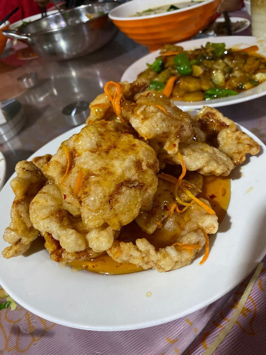 晚餐去的玛丽亚姐姐开的餐厅吃饭,不仅每道菜都踩到点上,居然还吃到了最好吃的锅包肉,所有人都赞不绝口,必须推荐给大饭后小镇散步,走到街边灯光昏暗的地方,漫天的繁星闪烁,居然看到了北斗七星和银河。餐厅名字和美味锅包肉见下图。