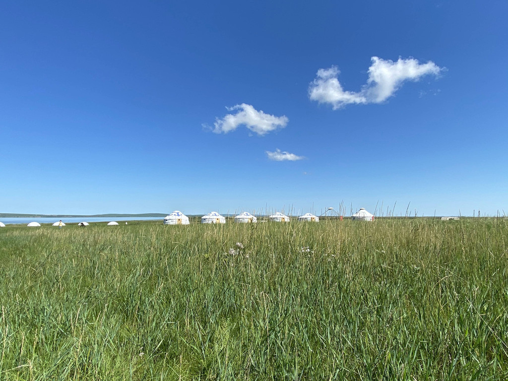 第一天,海拉尔至满洲里,小武机场接上我们直奔第一站呼和诺尔湖景区,车停在路边,我们沿着土路往河边走,蓝天白云和远处蓝色的湖面印衬着绿色草原上星星点点的白色蒙古包,美极了,初见辽阔的草原也让大家兴奋不已,各种摆拍。