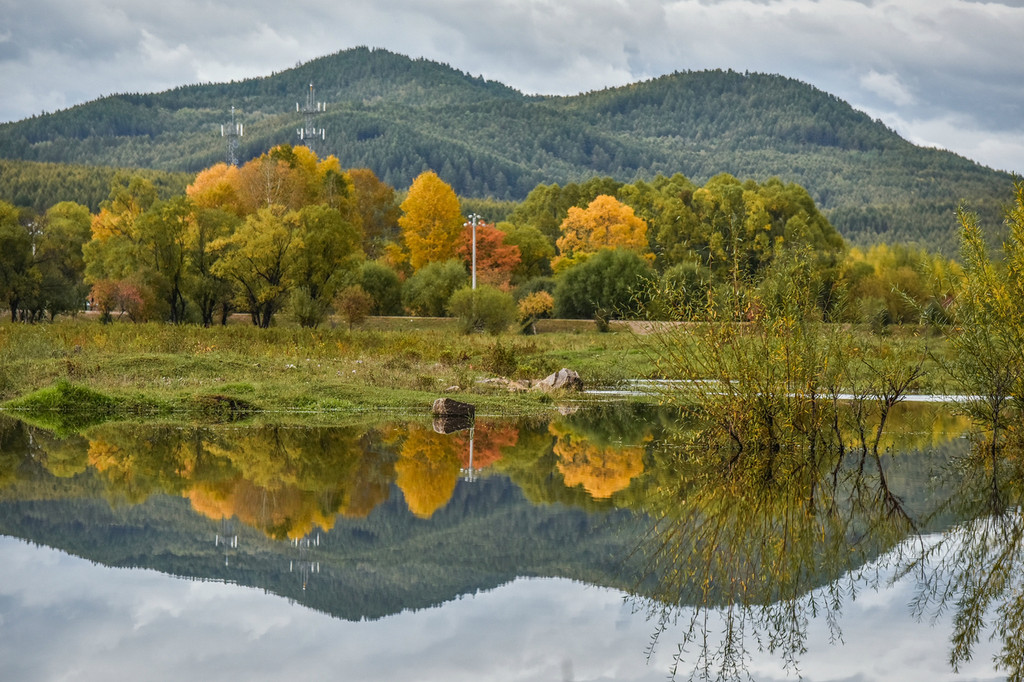 在呼伦贝尔牙克石所在的大兴安岭绰源河,看到的是深秋江南的风光,我不知道是江南的秋季来到太慢还是大兴安岭的秋季来到太快。红透的不止是黄叶,还有红叶,远方山上的绿色植被更是让人惊叹这条公路边的生态与气候的神奇。
