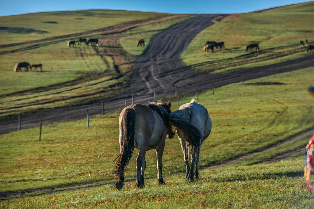 长期生活在城市的人们,来到大草原后,会觉得一切都很美!跟马群或者牛群合影也很有意思。你们喜欢这种风光与场景吗?