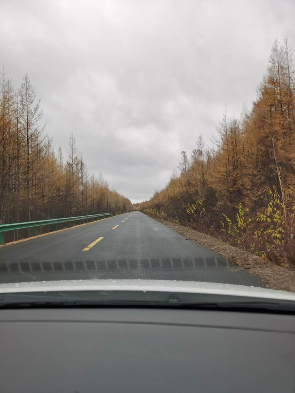 这一天在路上也开了很久,但走走停停的,收到了许多好照片。这里是大兴安岭,两旁都是各种树木。