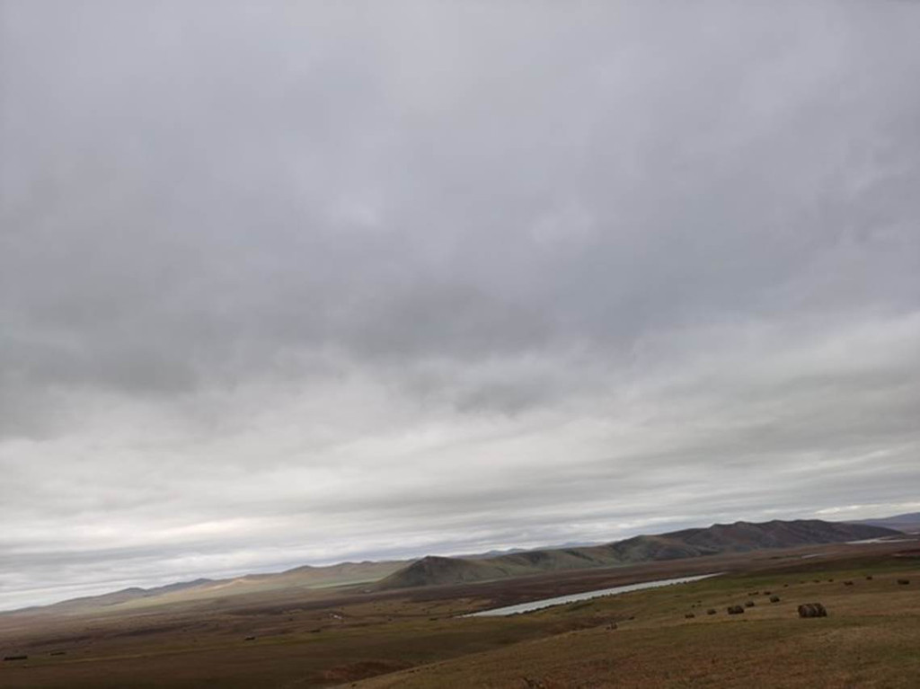 路上看到了草原,这个时候的草还有淡淡的绿色。而且,还能看到好多草垛,散落在草原上。我们几个人找了地方停了车,在草原上拍了些照片继续赶路。