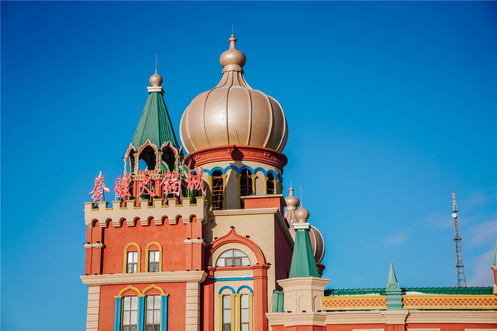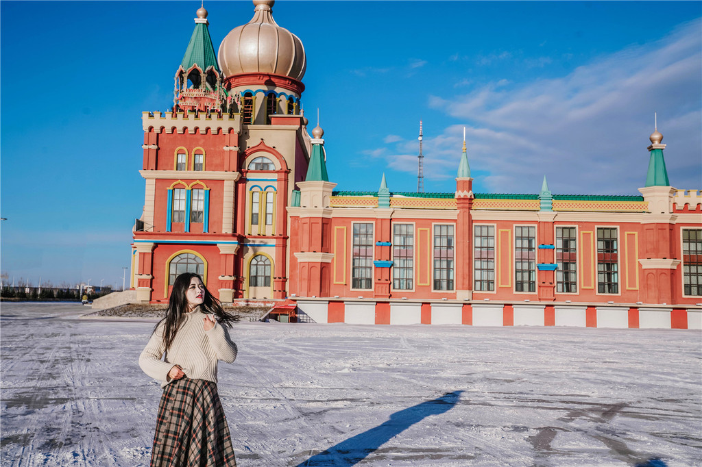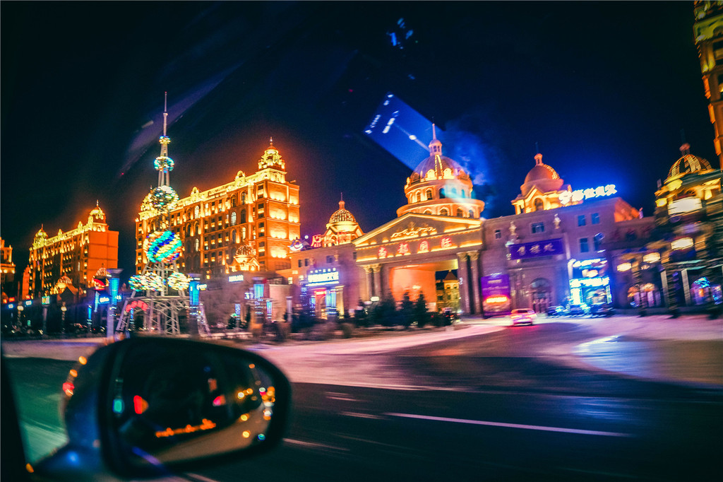 满洲里 这个边境小城并不大,街道却是整齐地划分好,方 方正 正的十二条街道让人觉得井然有序,车辆快速地从城市街道奔驰而过,卷起了堆积在道路两旁的积雪,坐落在街道旁的建筑同样吸引人眼球。