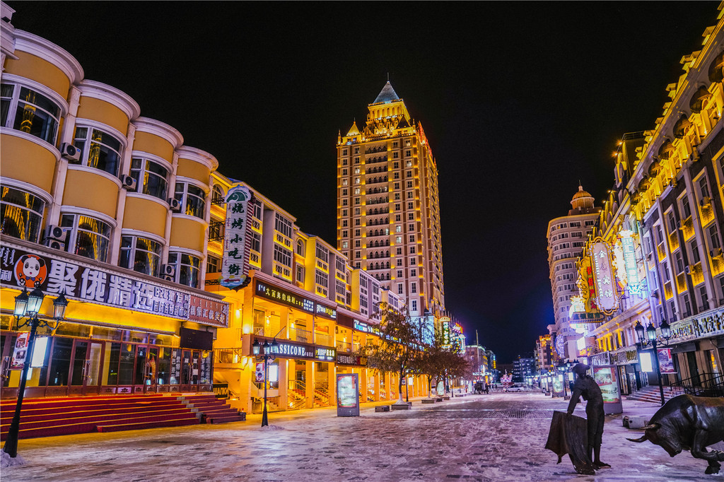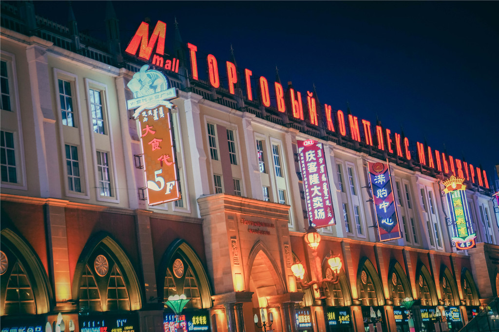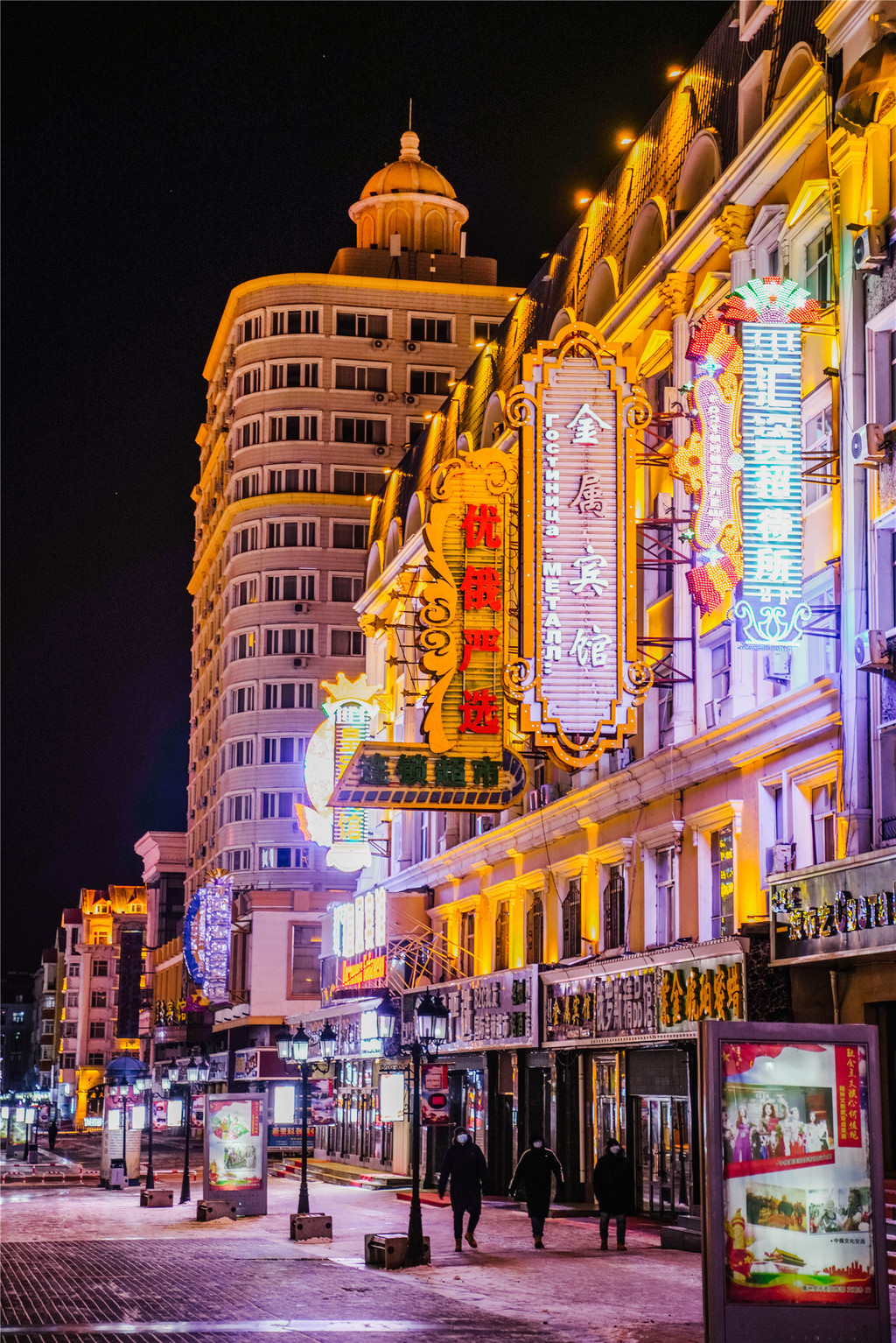 我们在 满洲里 的中苏大街上,尽管行人不多,商铺也关了门,在街道上走着却依然不会觉得荒凉或寂寥,或许是因为城市里闪烁着的灯光,才会在冷入刺骨的寒风中感受到了温暖。