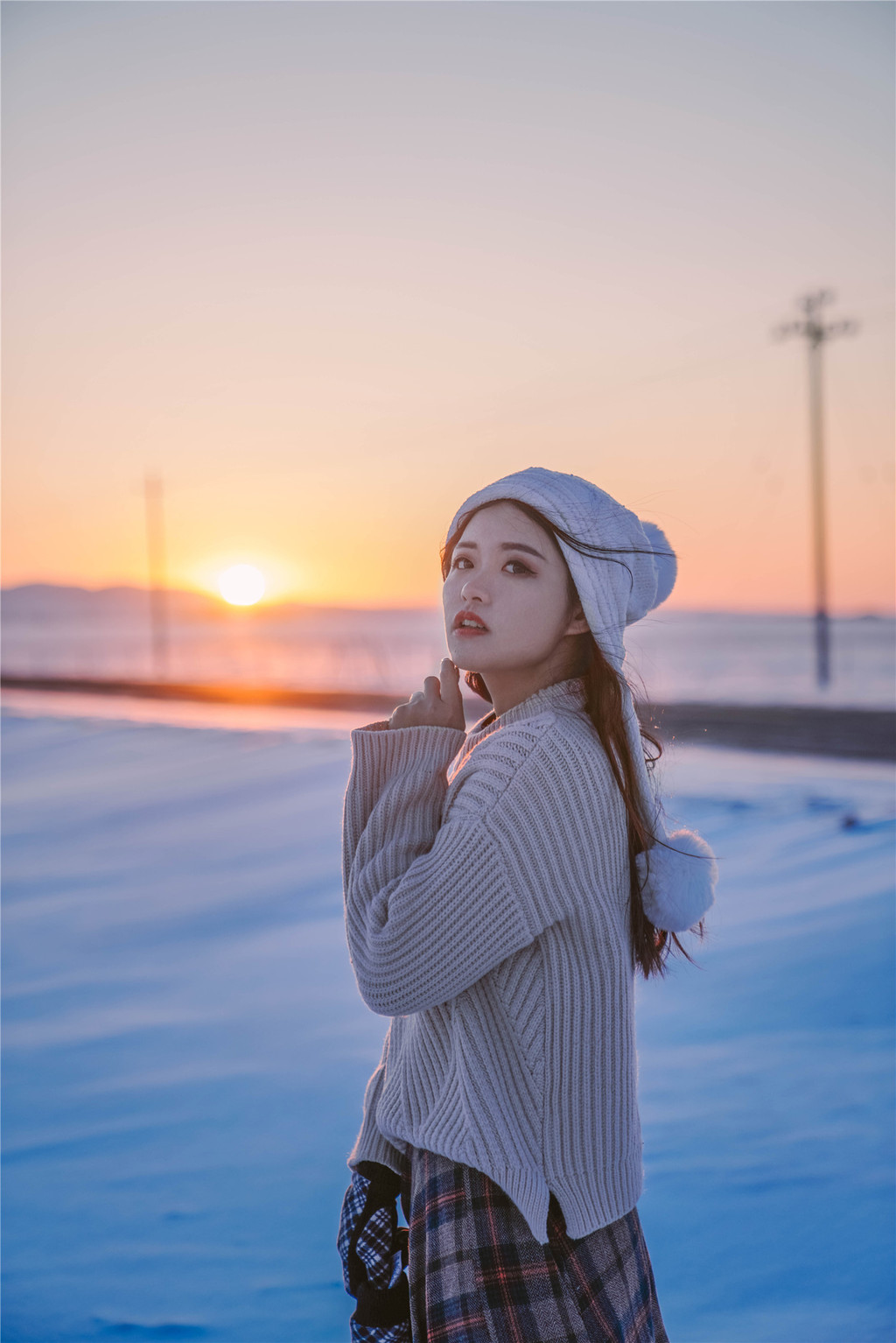 夕阳渐渐落下,整个画面变得昏暗,雪原折射出淡淡的粉色,静谧无声无息,看着呼出来的水汽在天边散出雾气,天际线上金黄的余晖映黄了天边,带着夕阳的无限缱绻,逐渐消失在雪山的后面。
