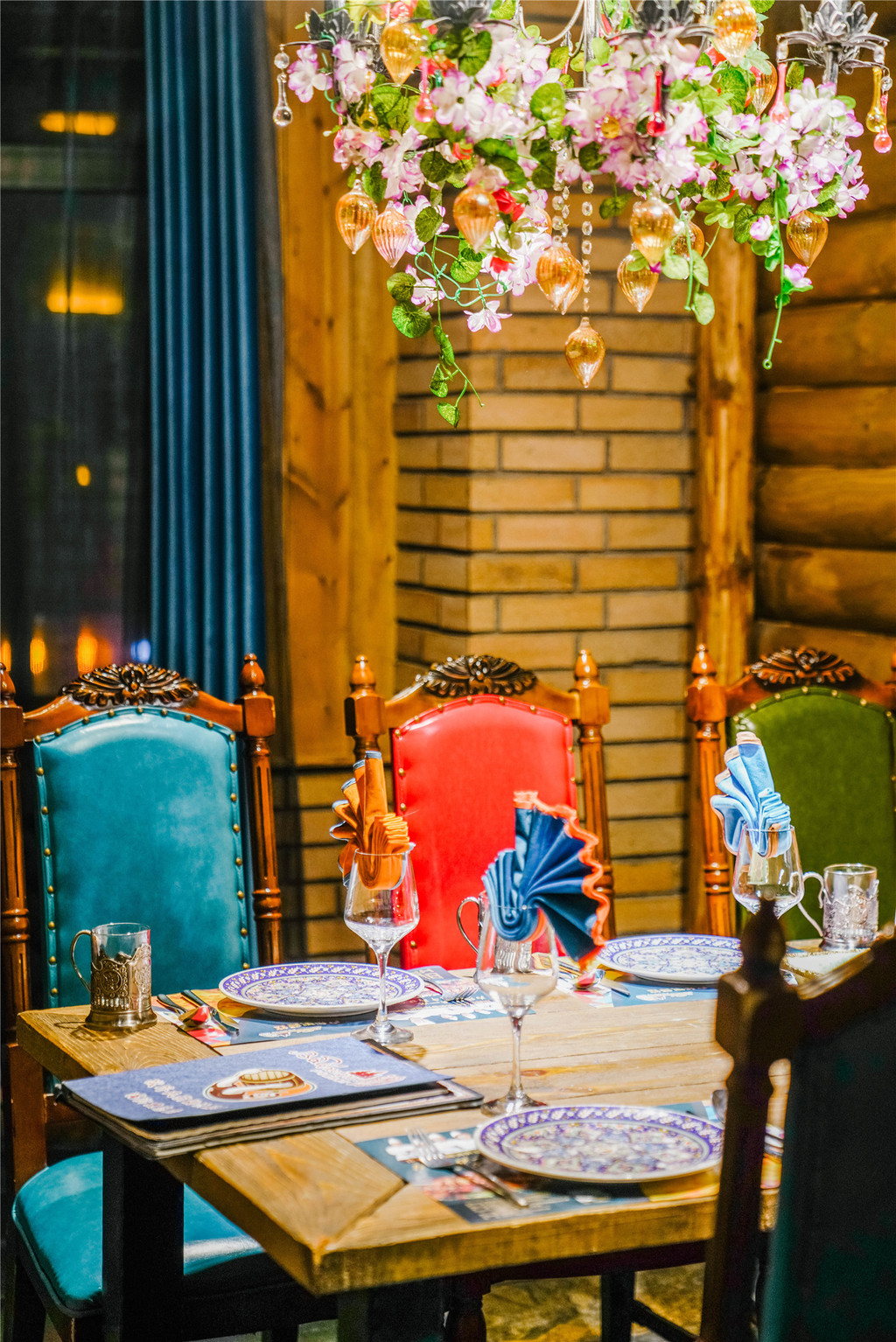 餐厅的环境很有 俄罗斯 的建筑风格,温馨温暖的灯光,木质的装潢,从桌椅到餐具布置都非常精致用心。在夏季还会有能歌善舞的 俄罗斯 小姐姐给客人载歌载舞。