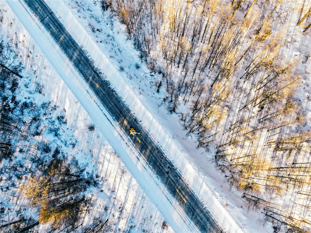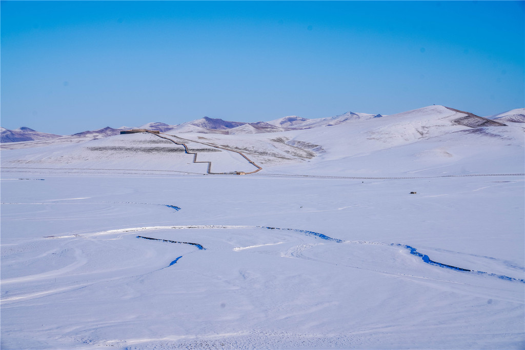 眼前蜿蜒曲折的就是莫日格勒河,虽然被白茫茫的冰雪覆盖,但是依旧能看到蜿蜒曲折的轮廓,我能想象出来,它夏日碧蓝色如丝带的模样。