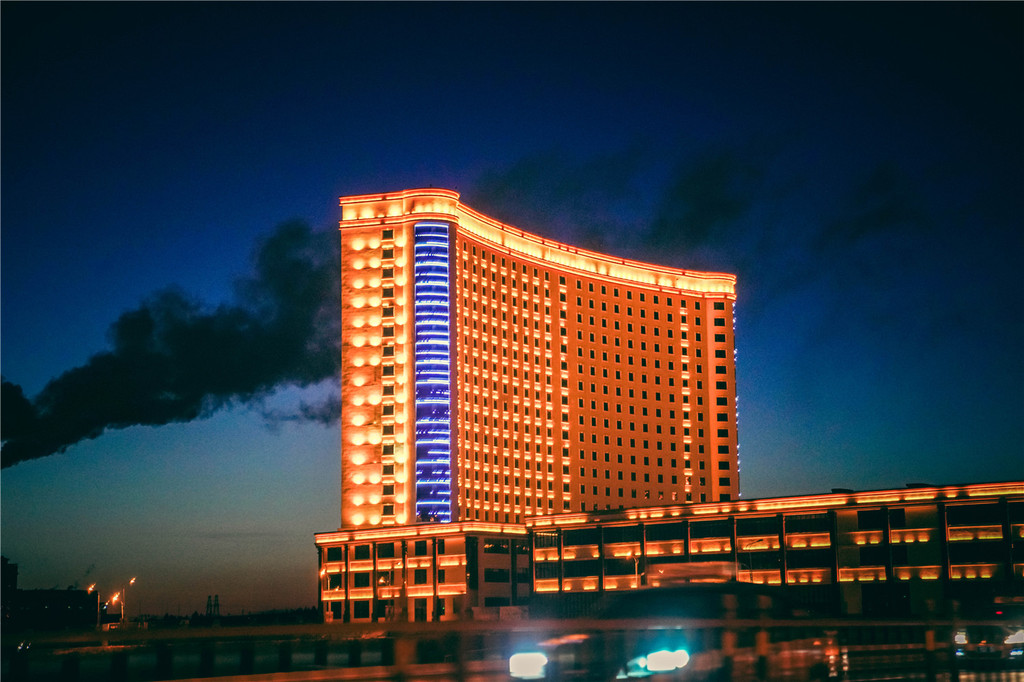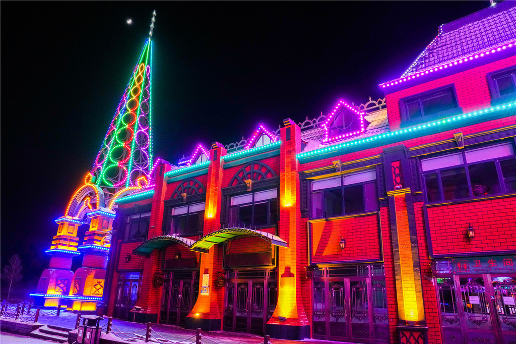 夜晚我们入住了同样具有 俄罗斯 风格的丽丽娅俄式度假酒店,酒店外观是一座俄式建筑,浓郁的异域风情,在夜晚酒店外墙会闪烁着彩色的霓虹灯光,一闪一闪地在这黑夜里面散发着神奇的吸引力,白天里积雪铺满酒店广场,红墙建筑犹如一座隐秘的欧式庄园。