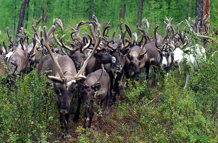 驯鹿虽然没有被完全驯化,但可能是长年生活在密林中,极少见到人,所以看见我们一点也不怕生,而且充满了好奇。