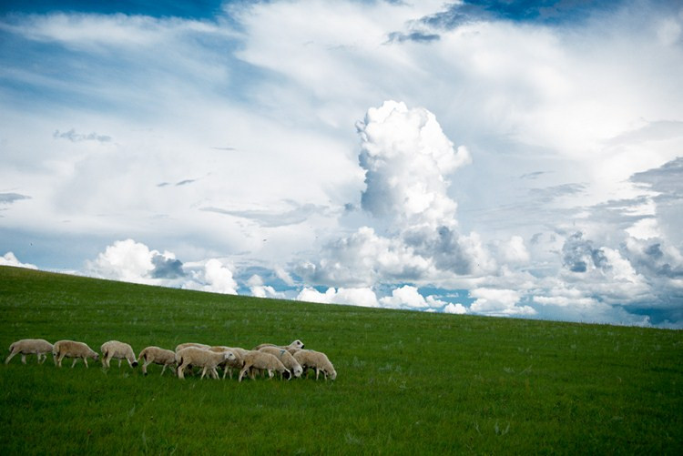 出了海拉尔以后,就会看到成群的,牛 马 羊 辽阔的大草原 流动的彩云在空中时时作翩翩的摆舞,似乎是微笑,又似乎是微醉的神态。白云时而如万里平畴,辽阔空旷,静谧无声;时而如皑皑雪峰,圣洁如玉,奇特瑰丽;时而如妩媚动人的精灵,轻盈的变幻着动人的舞姿,随着清风缓缓流动;时而如巧夺天工的妙手,将蓝天装扮得婀娜多姿,如诗如画。在云海深处,或许还会有楚美动人的仙女,身着彩衣,手提花篮,向人间散播着爱与幸福。