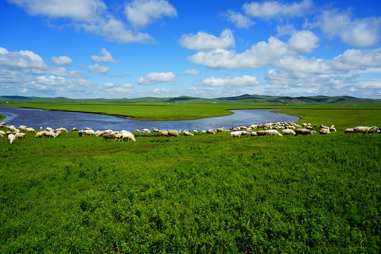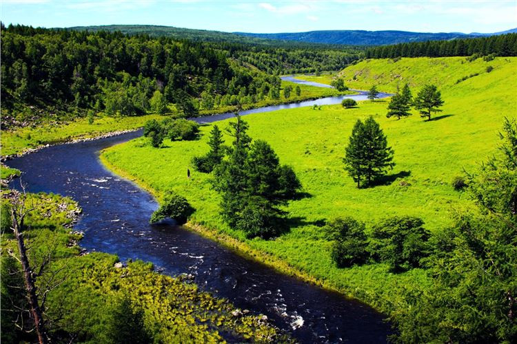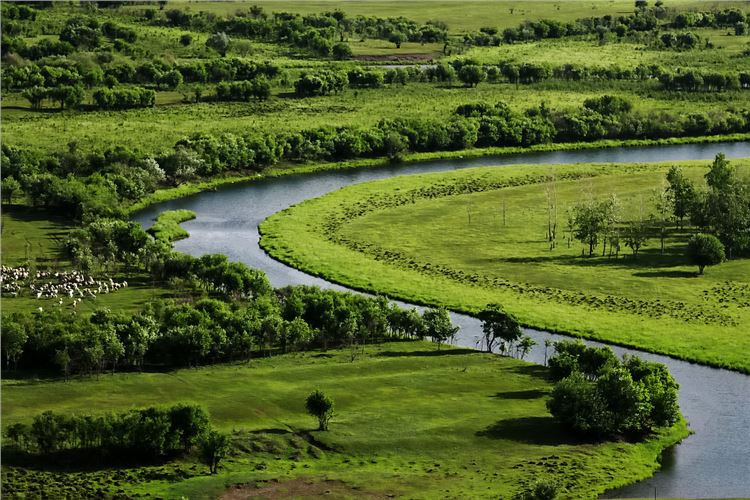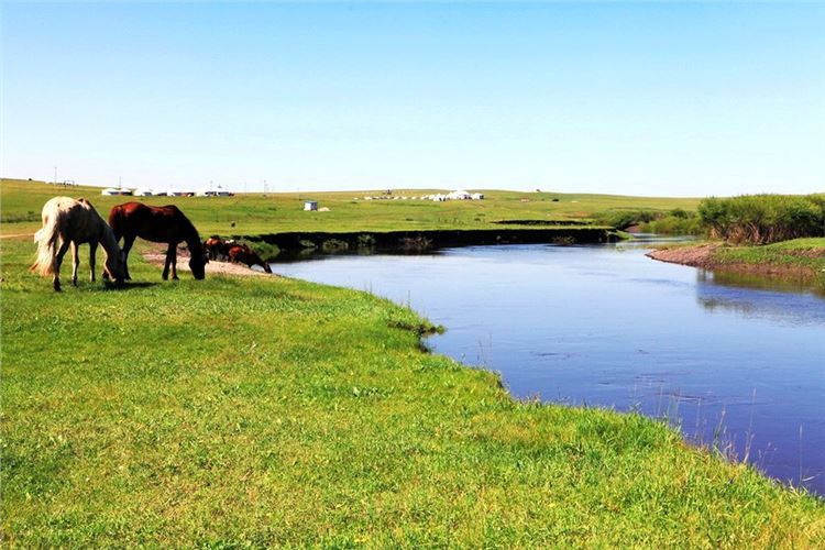 莫尔格勒河最美的地方当数中下游的草原地区。蓝天,白云,青山,碧水,百花烂漫,绿草如茵,莫尔格勒河在无垠的草原上九曲回肠地转了无数道弯,抚挽滋润着风光秀美的牧场,犹如一幅美丽的风景画;而河边飘着炊烟的蒙古包,游动着的牛马羊群,又给画面增添了无限生机