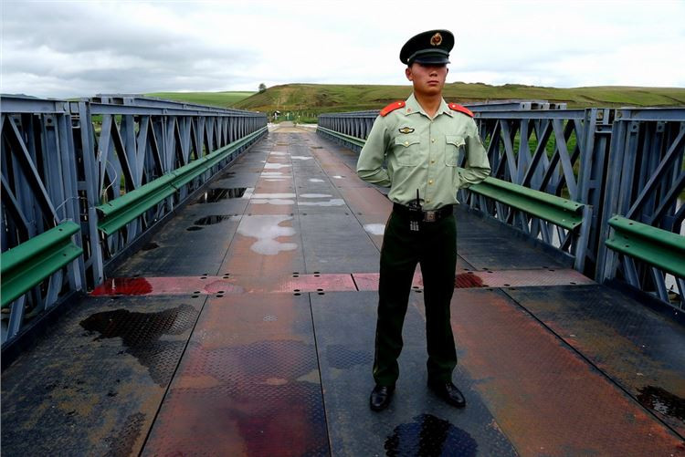 口岸大桥,以中心为界,守卫在这里的兵哥哥,英俊潇洒