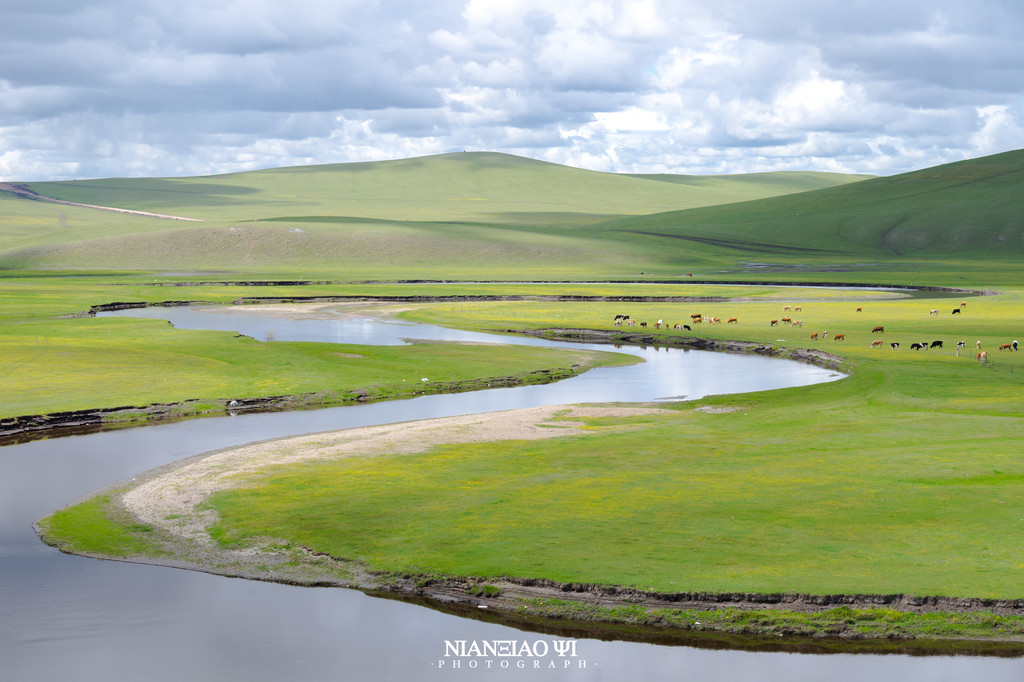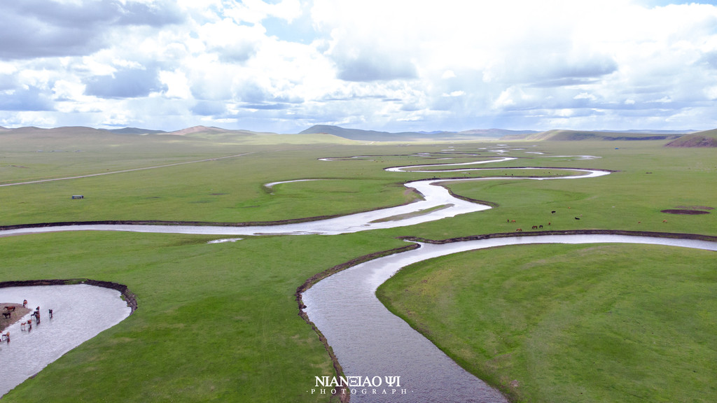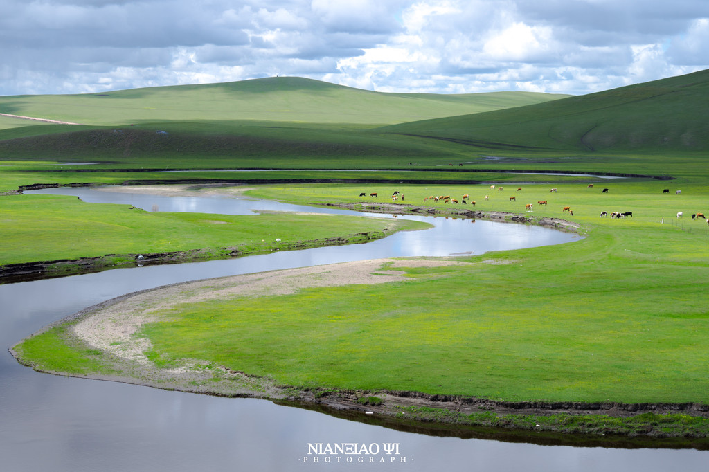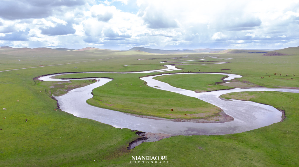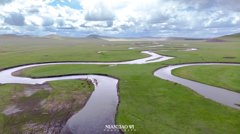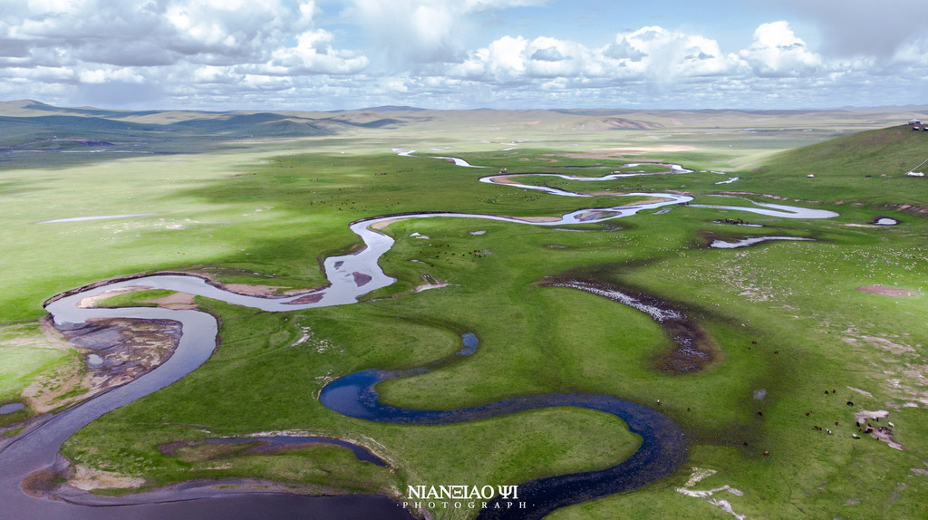 碧绿的草原、蜿蜒的河道,恰如油画一般,色彩斑斓