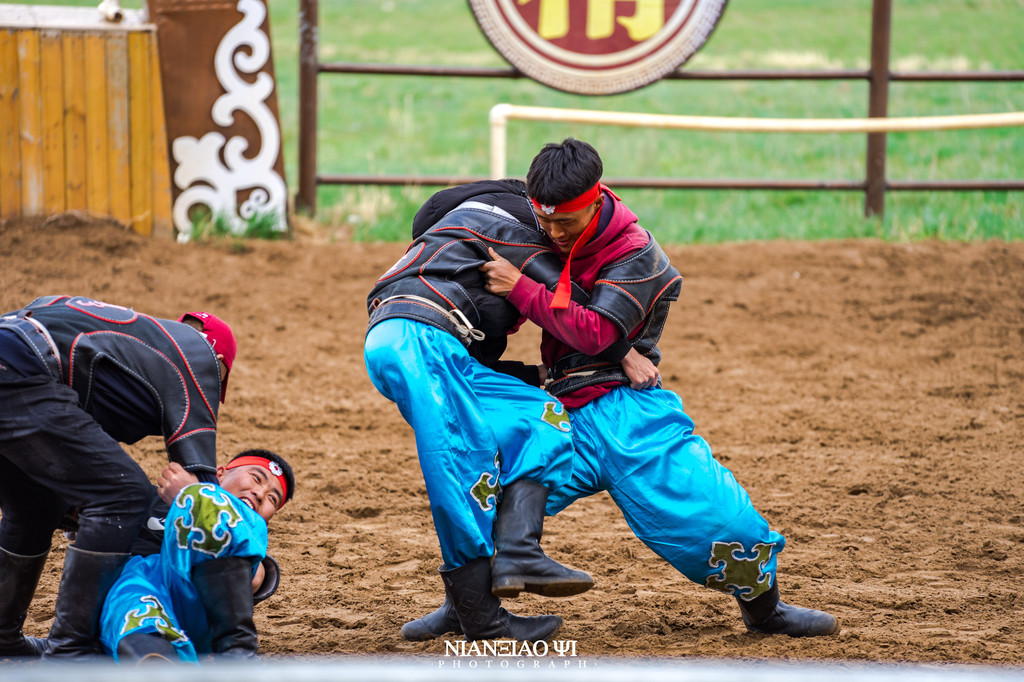 它是 蒙古 族三大运动(摔跤、赛马、射箭)之首,以前只在电视上看到过,虽然是表演性质的搏克,但是真的摔,观众们会跟着运动员叫喊起来,非常有意思