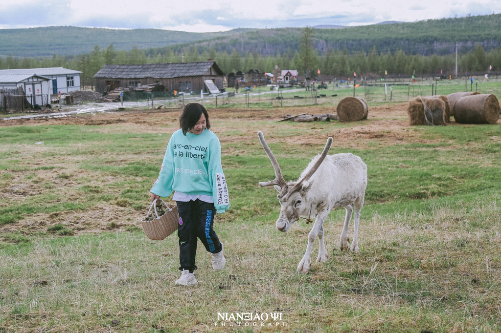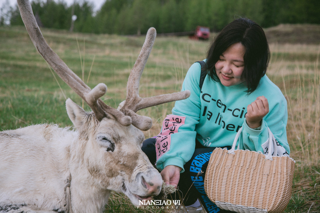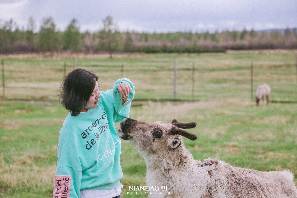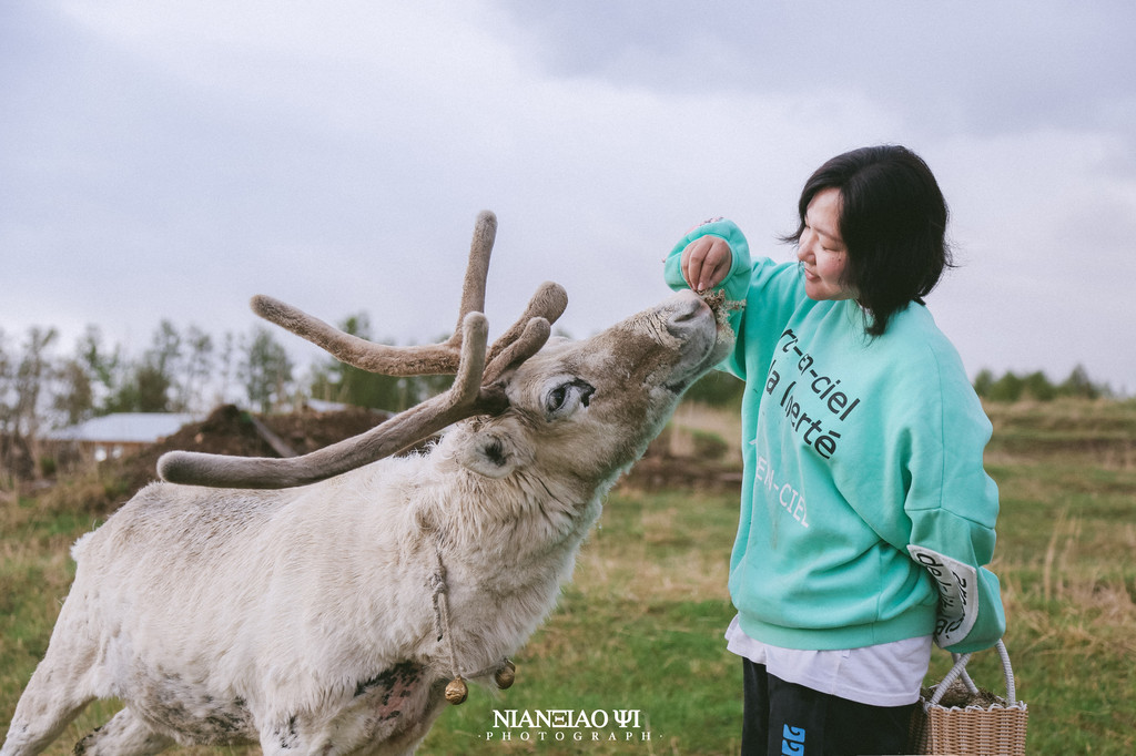 多傲慢的驯鹿,也禁不住手中苔藓的诱惑,呵呵o(* ̄︶ ̄*)o