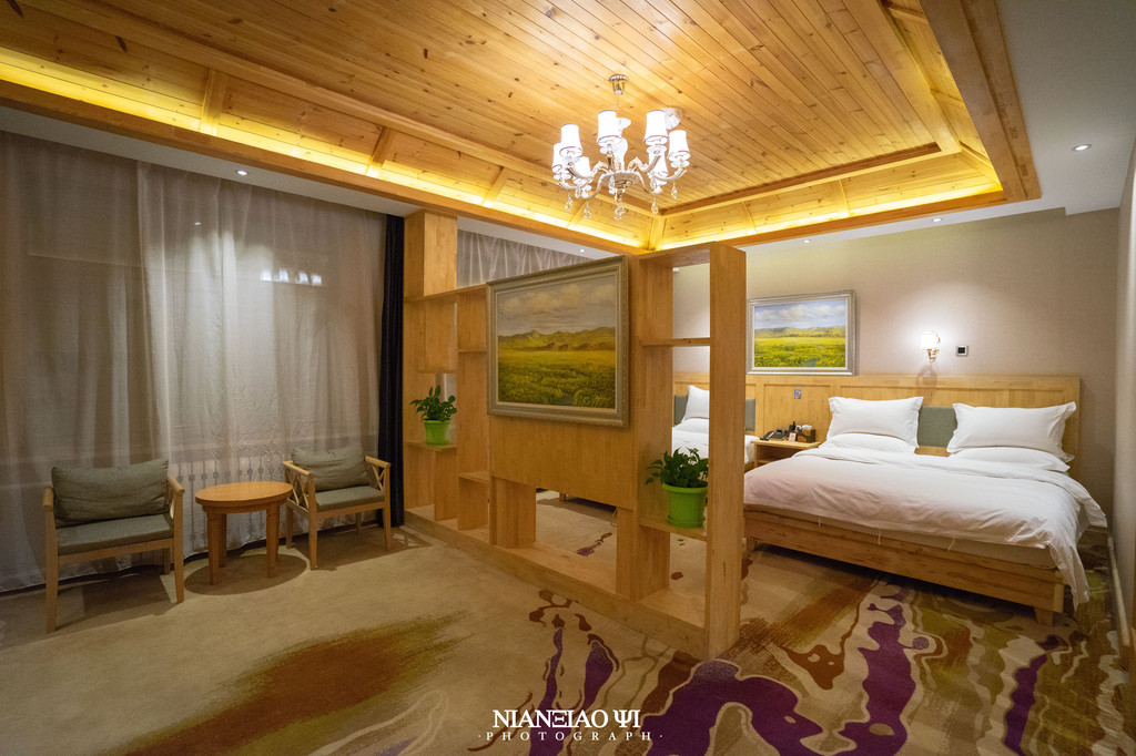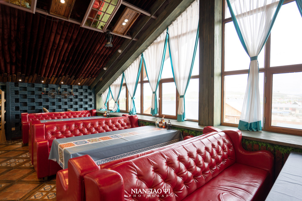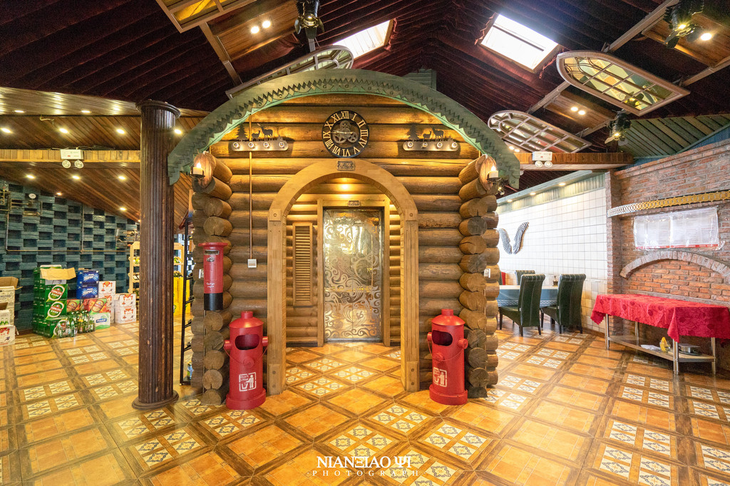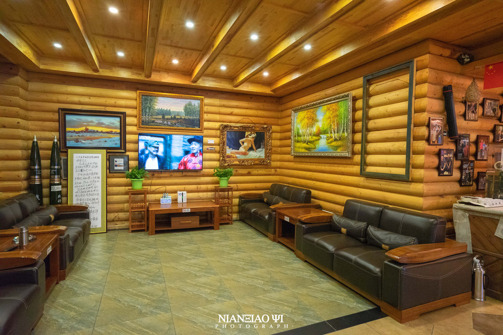 酒店内部也有木刻楞元素的设计,皮沙发、油画又有俄式风情,涛哥说旺季这家酒店很难定,而且价格也会上涨