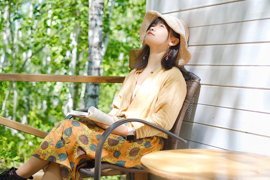 ▲清晨的林间木屋前,我坐在阳台上听来自四面八方的鸟鸣捧着书没有看进去一个字。