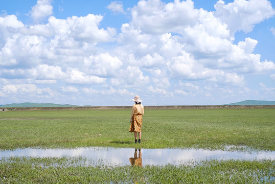 这是大雨来临前,在额尔古纳市郊的一个草原上随意给自己拍的照片。