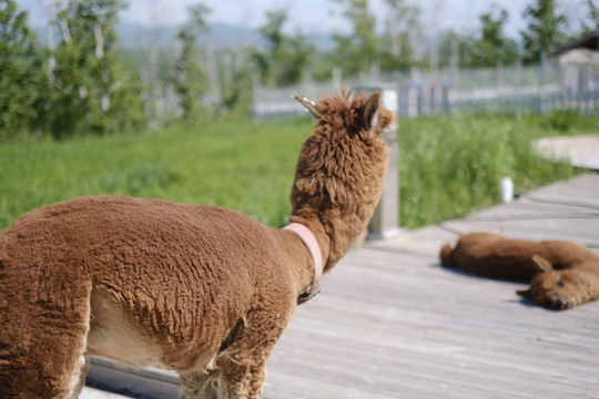 泳池的另一边用酒店饲养的羊驼,我们在第二天上午有拜访它们。