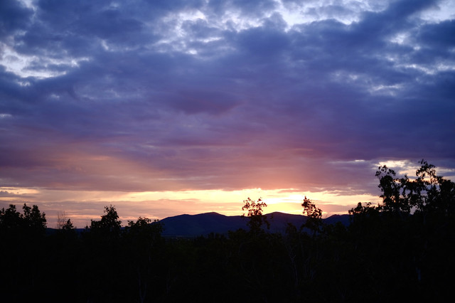 在泳池畔看远处的日落,浓重的色彩预示着明天的好天气。