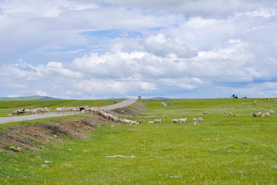 羊呢,过马路仿佛是逃难一样,一边奔窜一边慌慌张张咩咩咩地往聚集的地方挤,胆小地可爱。