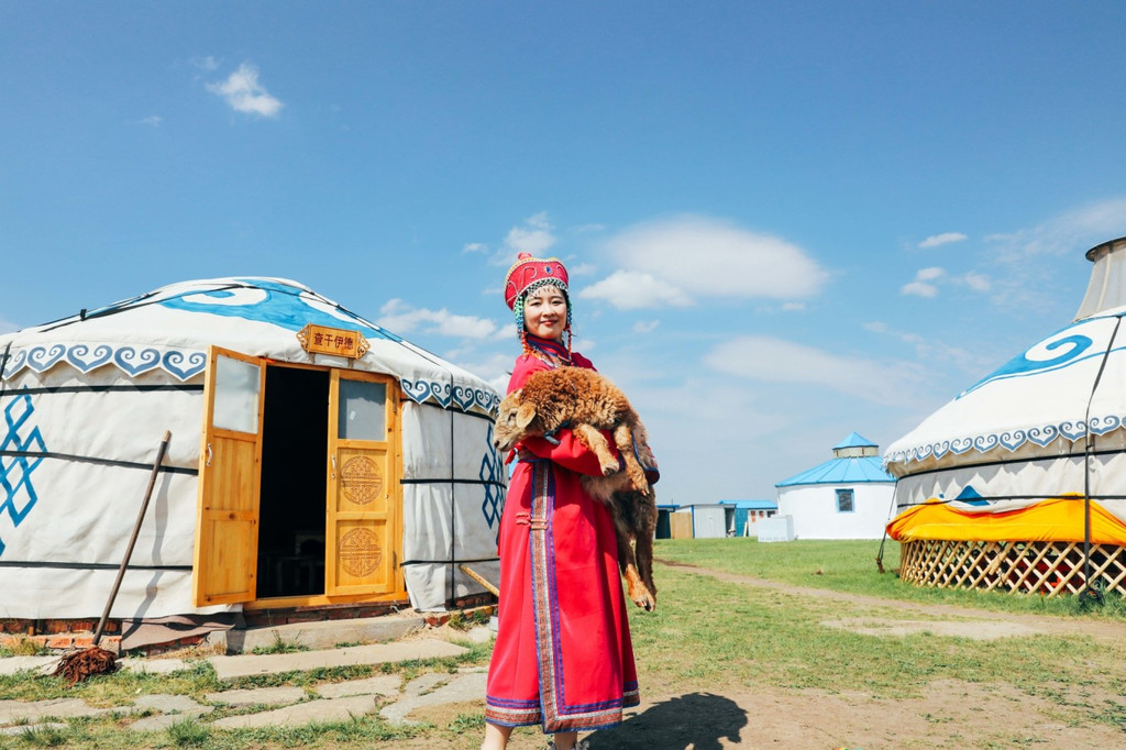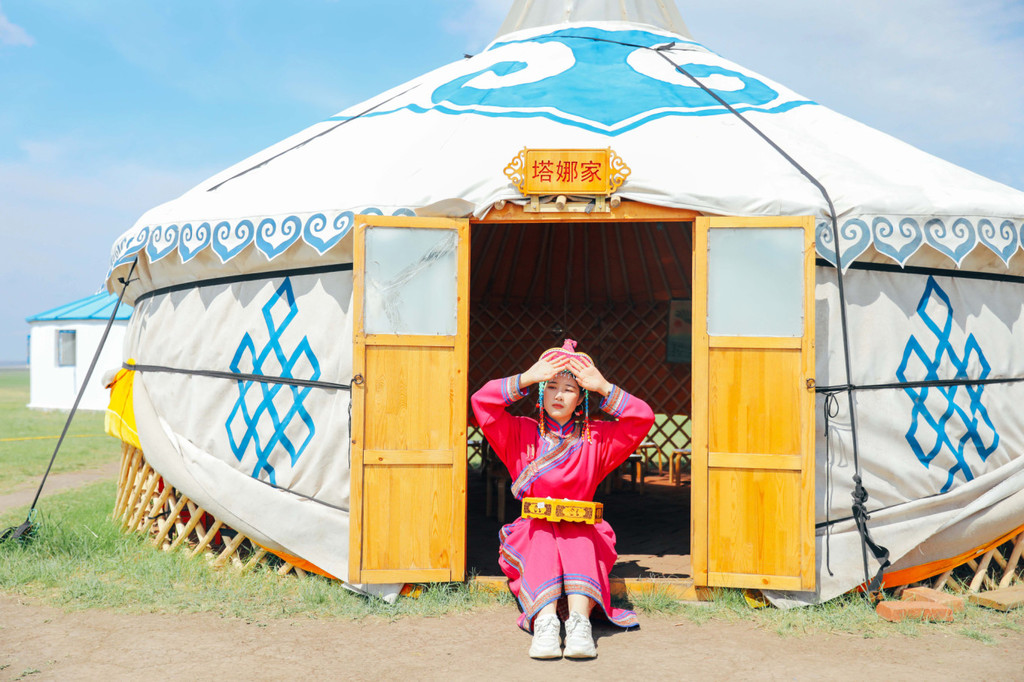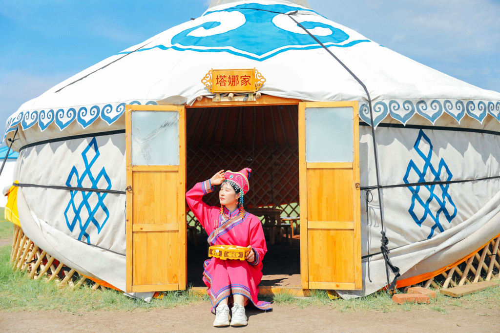 这里可以换上 蒙古 族服饰,尽情的拍照,哇, 颜色真的好好看呀。