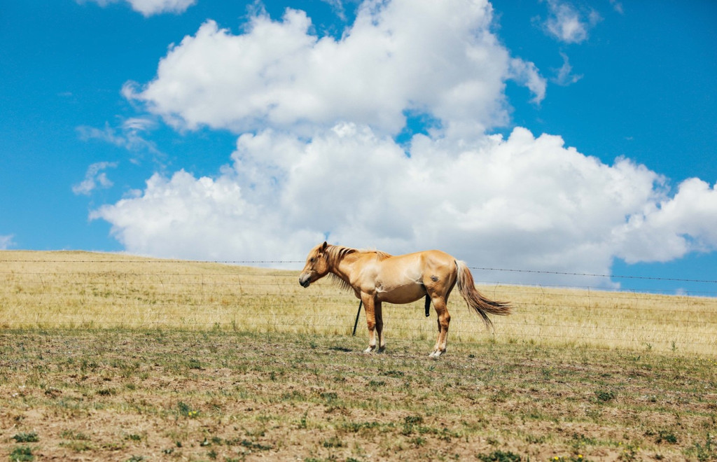 随处可见的马,车会停在离它较远的地方,因为要顺着一条路开,不能每辆车都开辟一条新道路,破坏了草原的原有样貌。