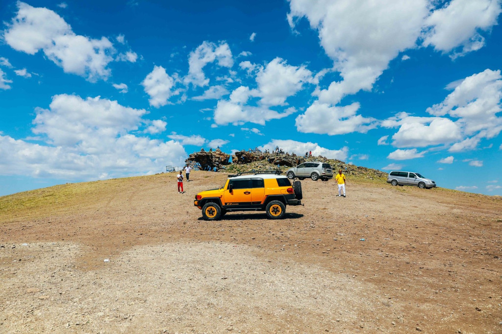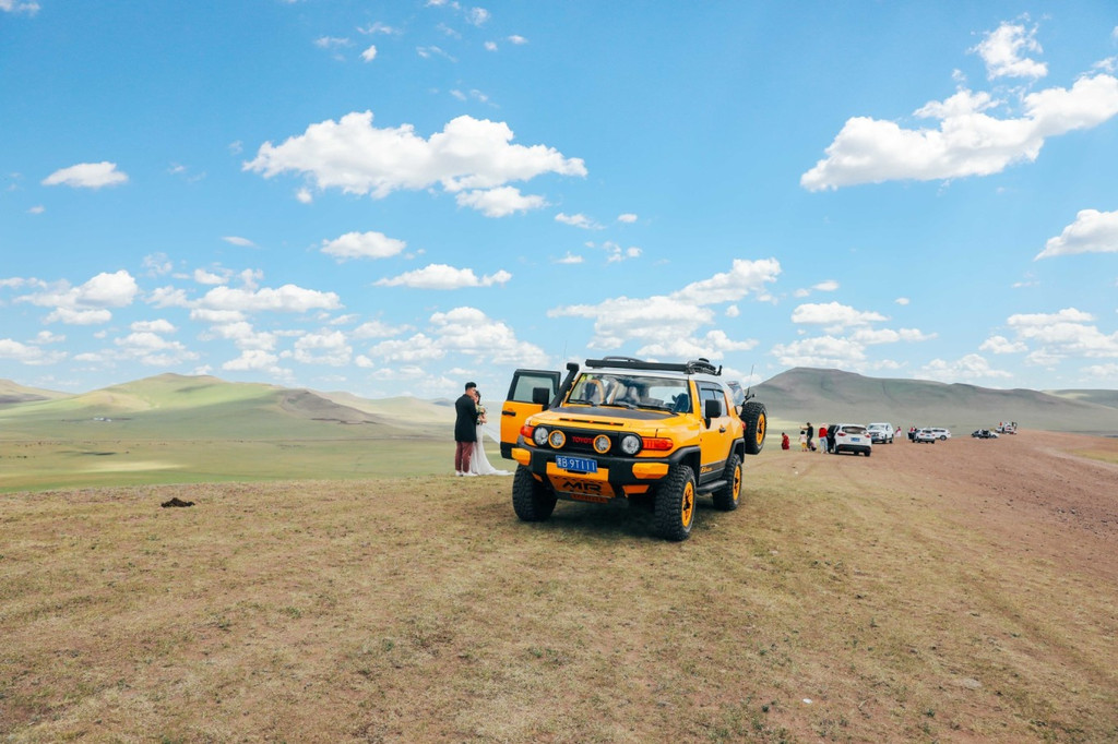 我们的座驾,整齐的停在草地上,在广袤的大自然面前,我们都是如此的渺小。