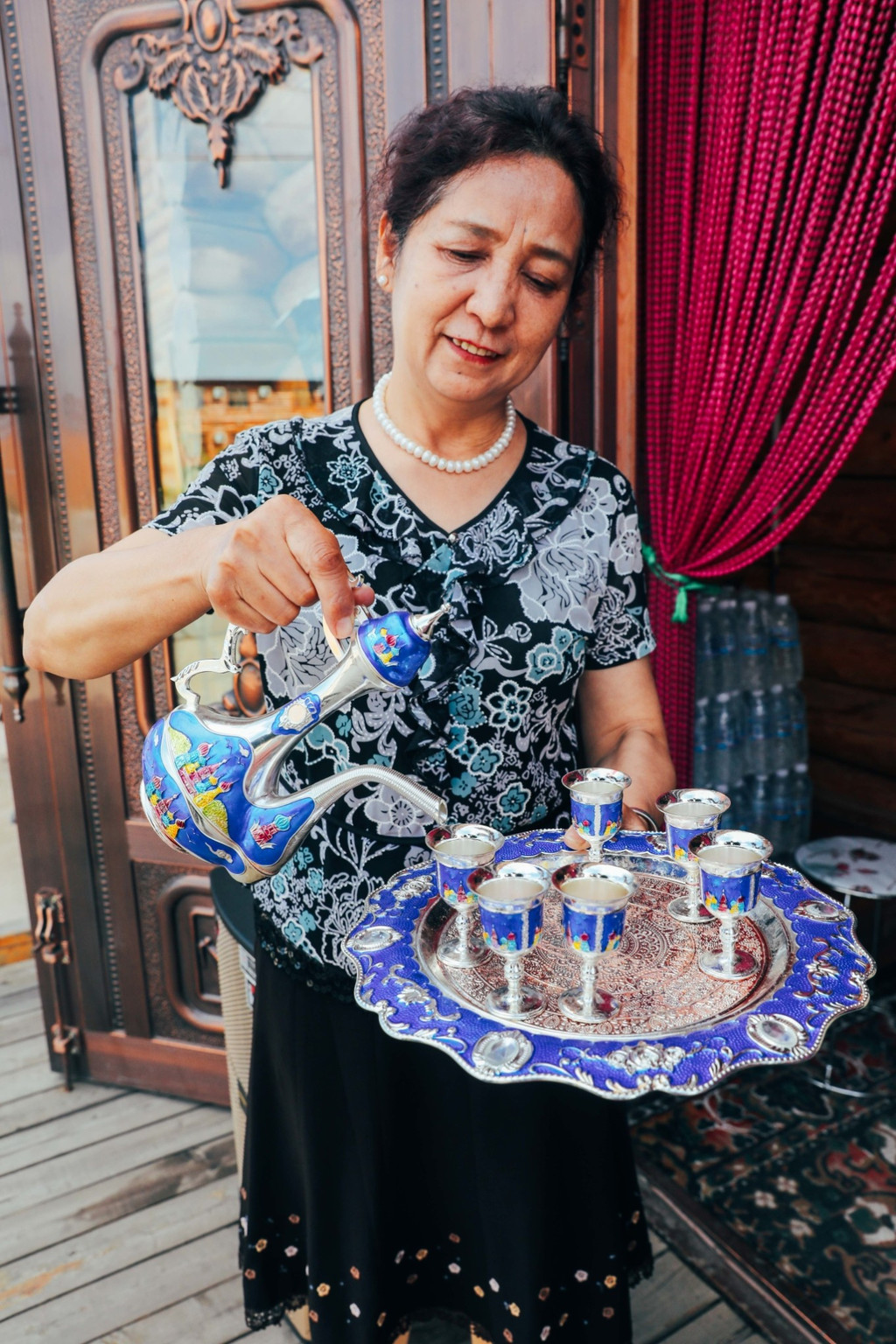 一进门,会先倒上奶茶作为欢迎时的礼节,就像倒酒一样,朋友自远方来.......完全没有听到讲解