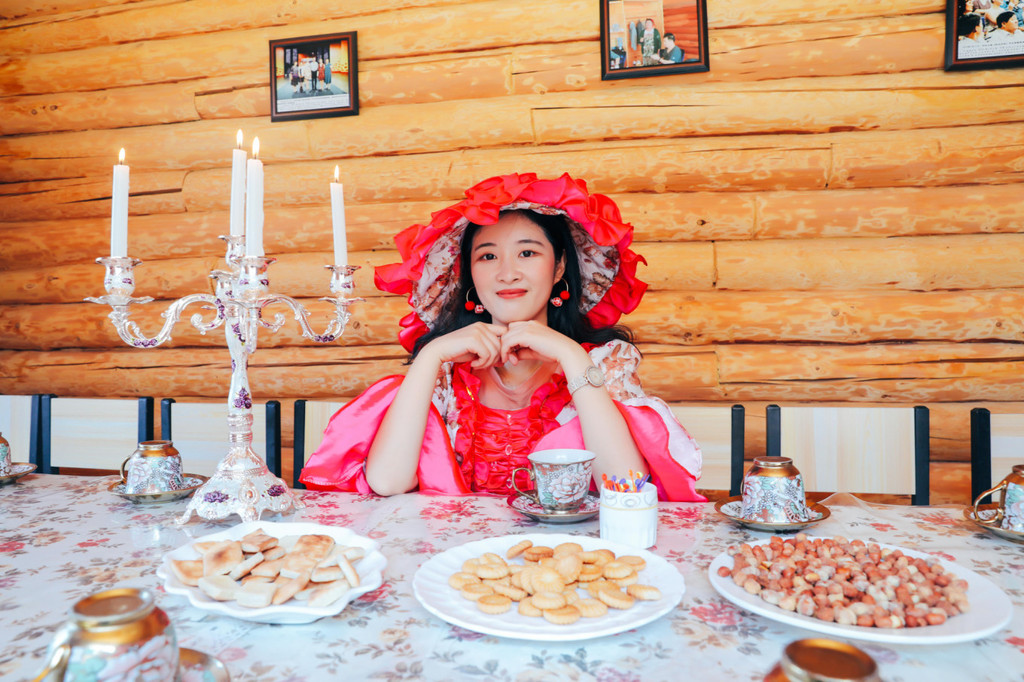 这里可以换上 俄罗斯 民族服装,拍照,一开始刚穿上的时候,感觉真的好丑啊