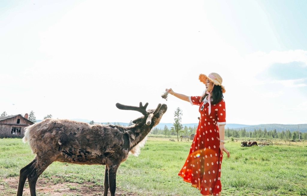 呼伦贝尔 呼伦贝尔第一次见到驯鹿,原来圣诞老人的座驾就是它,不过夏天太热,它们都躲起来了,如果不是为了吃食,怕是寻不到它的踪迹。